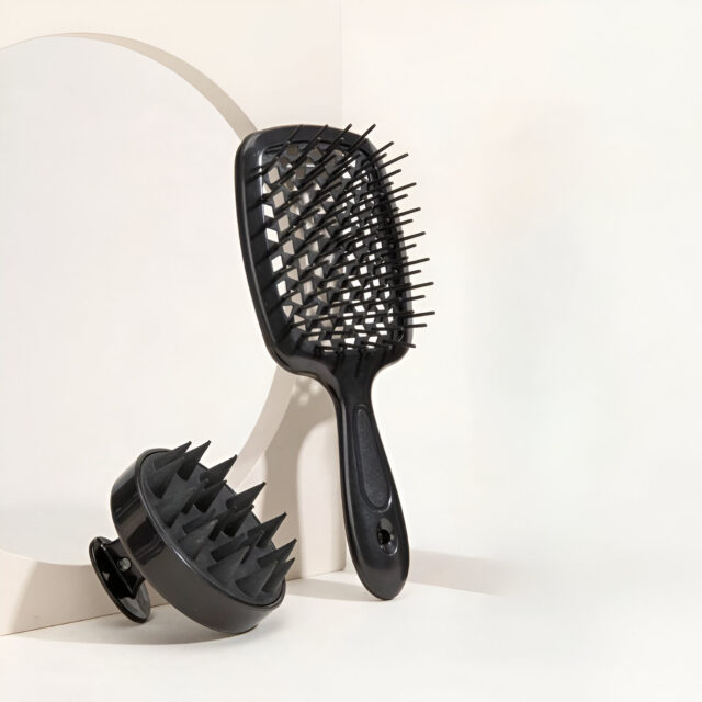 This set is more than just a regular comb and brush—it’s a complete hair care solution. The hollow-out comb is lightweight, easy to hold, and glides through wet or dry hair without causing breakage. The rubber massage brush has the perfect firmness to provide a deep scalp cleanse while stimulating blood circulation. Together, they help promote healthy hair growth and leave your scalp feeling refreshed.