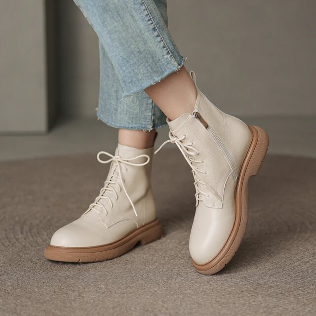 Elevate your footwear collection with these stunning Side Zipper Women’s Ankle Boots. Crafted from premium genuine cow leather, these Martin-style boots are designed for outdoor adventures and casual outings during autumn and winter. The combination of cross-tied laces and a convenient side zipper provides a perfect balance of functionality and style. With a chic round toe, solid design, and a medium-height thick square heel, these boots offer all-day comfort while making a bold fashion statement. Whether you’re heading to work, running errands, or enjoying a weekend stroll, these boots are your ultimate cold-weather companion.