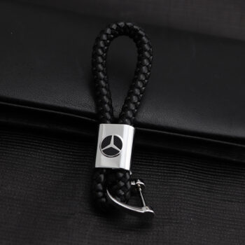 Genuine Leather Car Key Chain with Metal Keyring for Mercedes-Benz