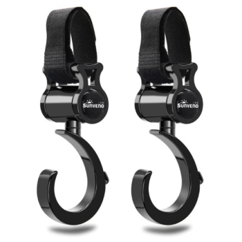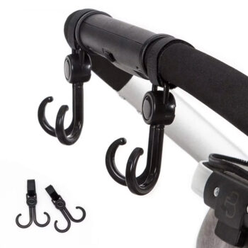 2-Pack 360° Rotating Stroller Hooks – Heavy-Duty Bag & Diaper Organizer Clips