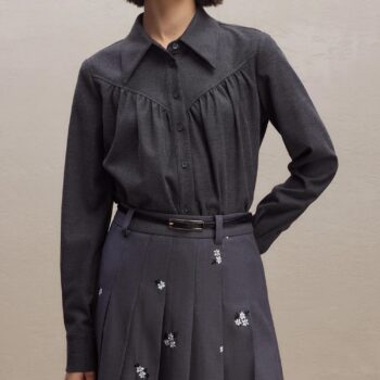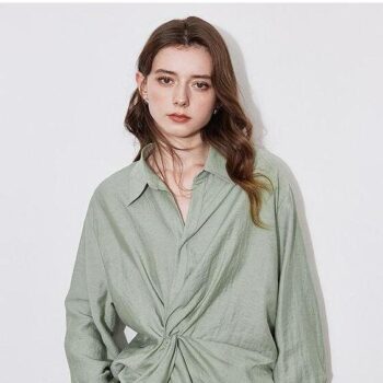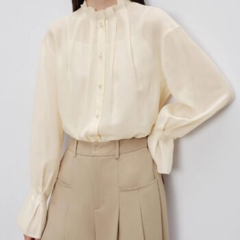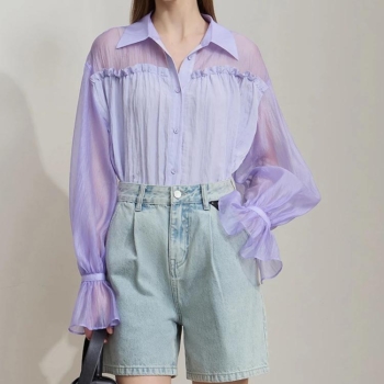 French Retro Style Lapel Collar Pleated Shirt for Women