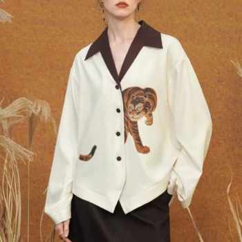 Loose Fit Japanese Style Tiger Print Blouse for Women
