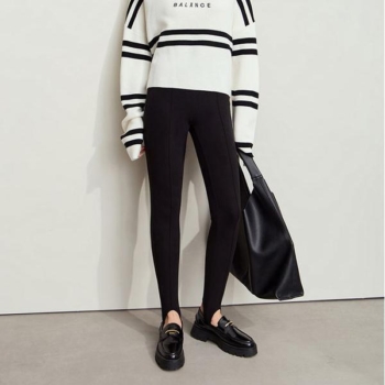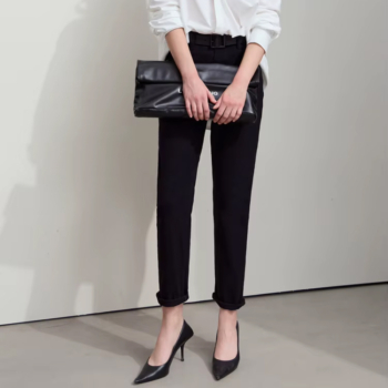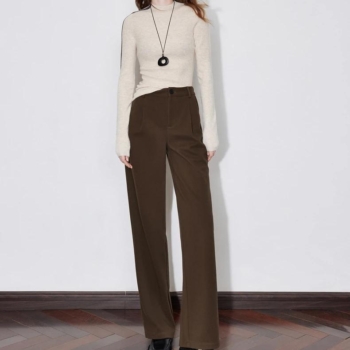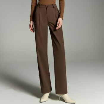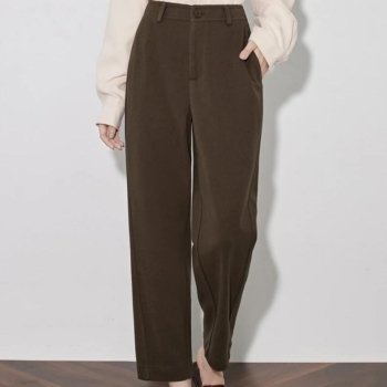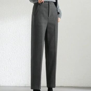 Mid Waist Workwear Style Straight Woolen Pants for Women