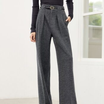 Women’s High-Waist Wide-Leg Woolen Suit Pants
