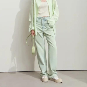 Vintage Straight-Leg Denim Jeans with Embroidered Rough Edge