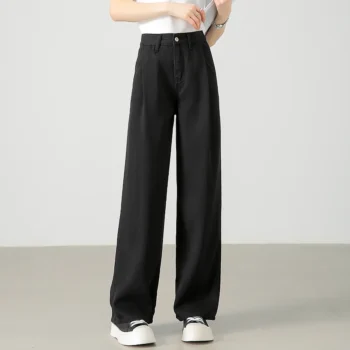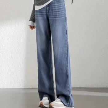 100% Cotton Winter Jeans – High-Waist Straight Ankle-Length Denim Pants