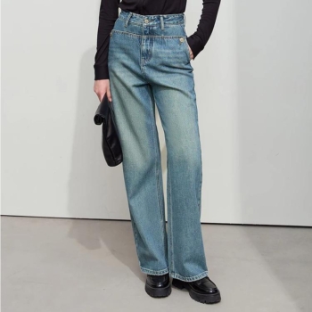 High-Waisted Straight Fit Retro Washed Lyocell Denim Jeans
