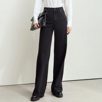 Women’s Loose Wide-Leg Distressed Black Denim Pants
