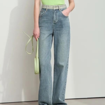Women’s Retro Contrast Patchwork Straight-Leg Jeans