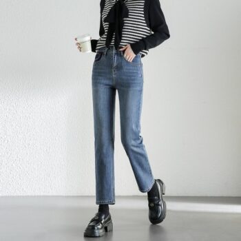 High Waist Retro Straight Cotton Denim Jeans for Women