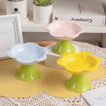 Height Adjustable Ceramic Pet Bowl for Small Dogs