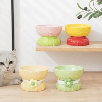Cute Cactus-Shaped Elevated Ceramic Bowl for Cats and Small Dogs