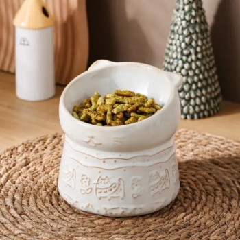 Japanese-Style Elevated Ceramic Cat Bowl – Retro Design for Dogs and Cats