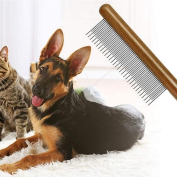 Professional Dog Comb with Wooden Handle – Dual Teeth for Detangling & Shedding