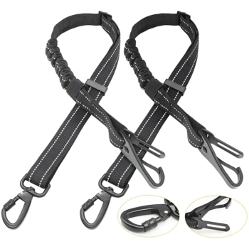 Reflective Shock Absorbing Tactical Dog Leash with Car Seatbelt – Fits Ford, Toyota, Honda