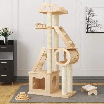 Solid Wood Cat Tree with Scratcher, Nest, and Multifunctional Design