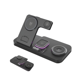 30W 6-in-1 Wireless Charger Alarm Clock with RGB Night Light & Fast Charging