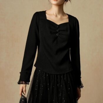 Elegant Plus Size Winter Knitted Top with Square Collar