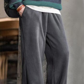 Fleece-Lined Casual Sweatpants with Cuffed Elastic Waist