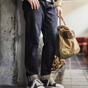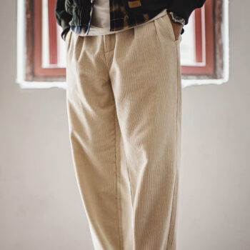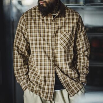 Men’s Vintage Plaid Long-Sleeve Shirt with Corduroy Lapel Design