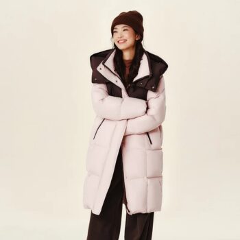 Women’s Long Water-Repellent Down Jacket with Detachable Hood for Winter