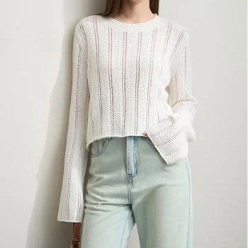 Minimalist Hollow Twisted Flower Cotton Knitted Short Sweater