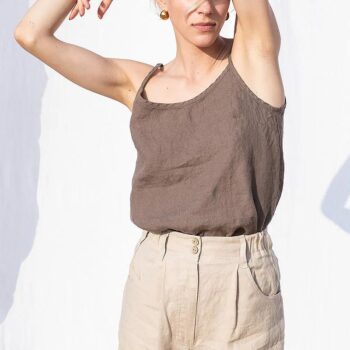 Women’s Grey Cotton Linen Sleeveless Top – Vintage Summer Casual Tank