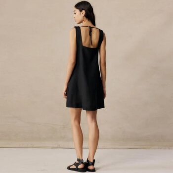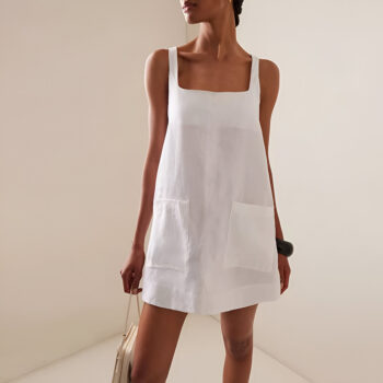 Chic Summer Linen Mini Dress with Square Neck and Pockets