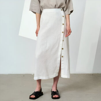 Chic Summer Linen Cotton High Waist Midi Skirt with Side Split