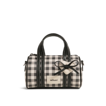 Vintage Leather Bowling Bag for Women with Adjustable Shoulder Strap