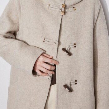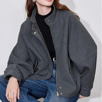 Women’s Lantern Sleeve Woolen Coat with Zipper Closure