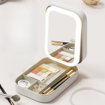 Creative Lighted Makeup Mirror with Touch Screen and Storage Case