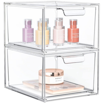Stackable Clear Acrylic Makeup Organizer Drawers with Pull-Out Handles