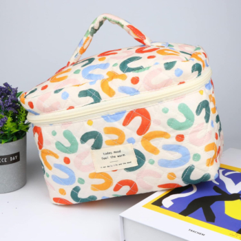 Large Capacity Quilted Cotton Embroidery Makeup & Toiletry Travel Bag