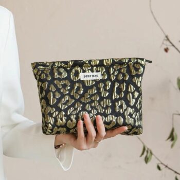 Large Capacity Gold Leopard Print Makeup Bag – Portable Travel Cosmetic Case