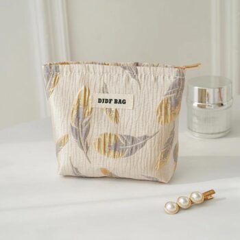 Gold Feather Small Makeup Bag – Portable Travel Toiletry & Cosmetic Storage
