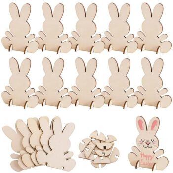 10Pcs Wooden Easter Bunny Ornaments for Kids DIY Painting & Hanging Décor