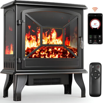 Portable 24-Inch Electric Fireplace Heater with Remote and App Control
