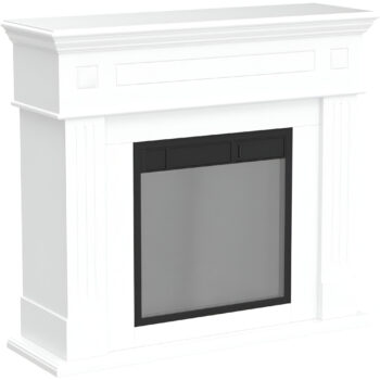 Ivory White Freestanding Electric Fireplace Mantel with LED Flames and TV Stand