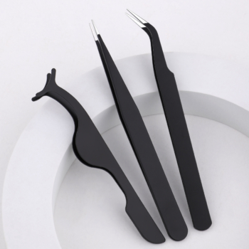 3PCS Stainless Steel Eyelash Tweezers Set