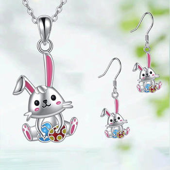3-Piece Cute Easter Bunny Necklace & Earrings Set