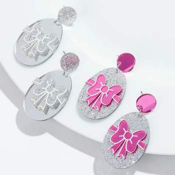 Glitter Acrylic Easter Egg Drop Earrings with Bow