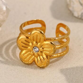18K Gold Plated Waterproof Flower Ring for Men and Women – Fashionable Stainless Steel Jewelry