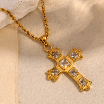 Sparkling Colored Zirconia Cross Pendant Necklace for Women – Waterproof Stainless Steel Jewelry