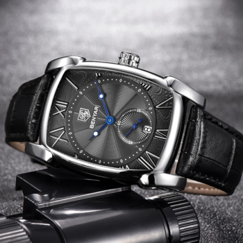 Men’s Luxury Quartz Watch with Leather Band and Water Resistance