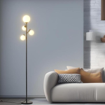 Modern 4-Globe Black Floor Lamp – Mid Century Standing Lamp with Frosted Glass Shades & LED Bulbs