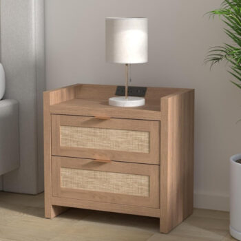 Boho Rattan Nightstand Set of 2 with Drawers and Shelf