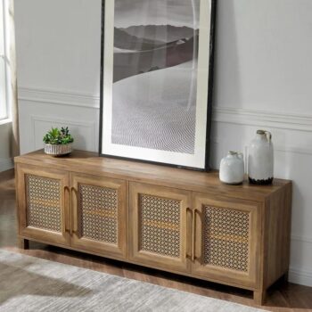Mid Century Boho TV Stand for TVs up to 75″, Rustic Entertainment Center