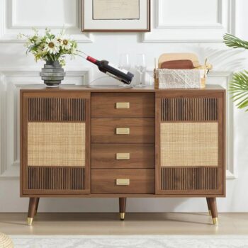 53″ Boho Sideboard Buffet Cabinet with Rattan Doors, Drawers & Storage