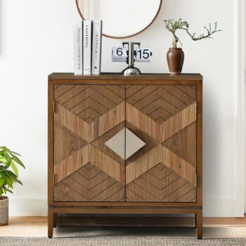 Mid-Century Modern Sideboard Cabinet with Geometric Carved Wood Doors